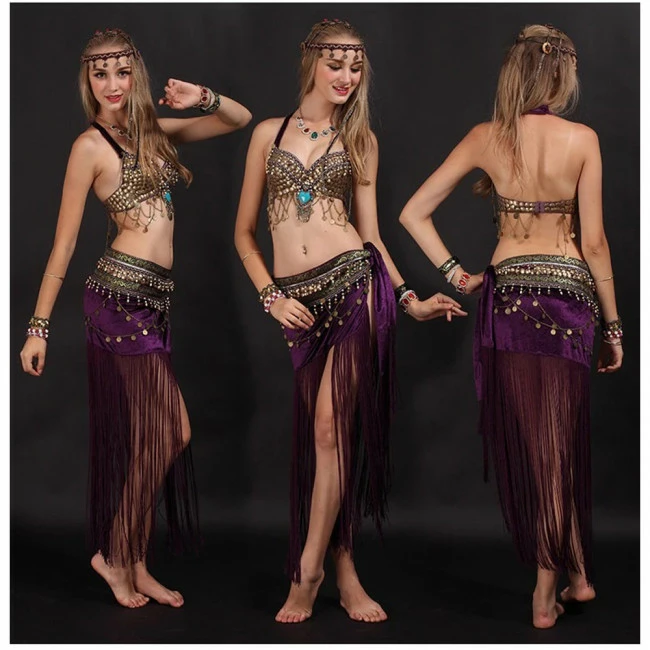 Belly Dance Top and Skirt. This costume is made of high-quality polyester material. It is elegantly handmade with good fabric. Great for Birthday parties, special occasions and dress up.