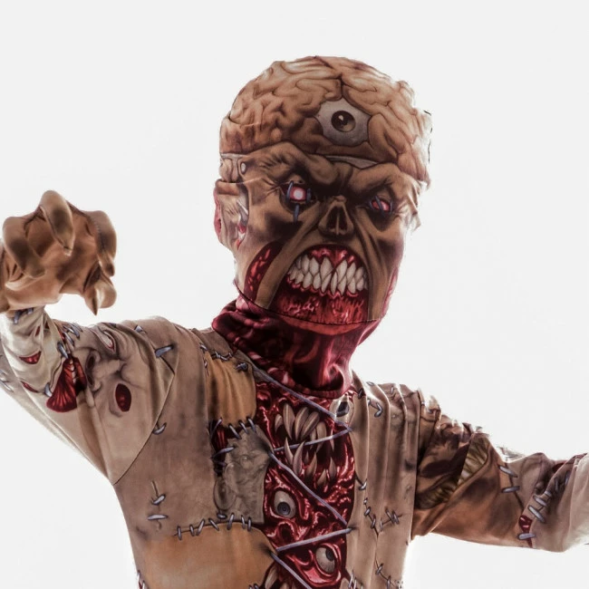 Boys Brain Zombie Costume. This beautifully designed lightweight Zombie Costume makes the perfect gift. Fashionable and creative patterns. This gory costume accessory includes a headpiece with brain zombie.