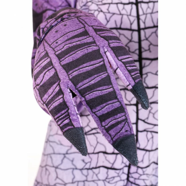- Soft-sculpted dinosaur face on top of hood has plastic eyes