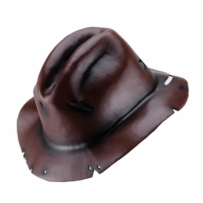 Freddy Krueger A Nightmare on Elm Street Cosplay Hat. Easy to clean and make dirty if needed. It was more fo a plastic feel. But it was good for what it was used for.