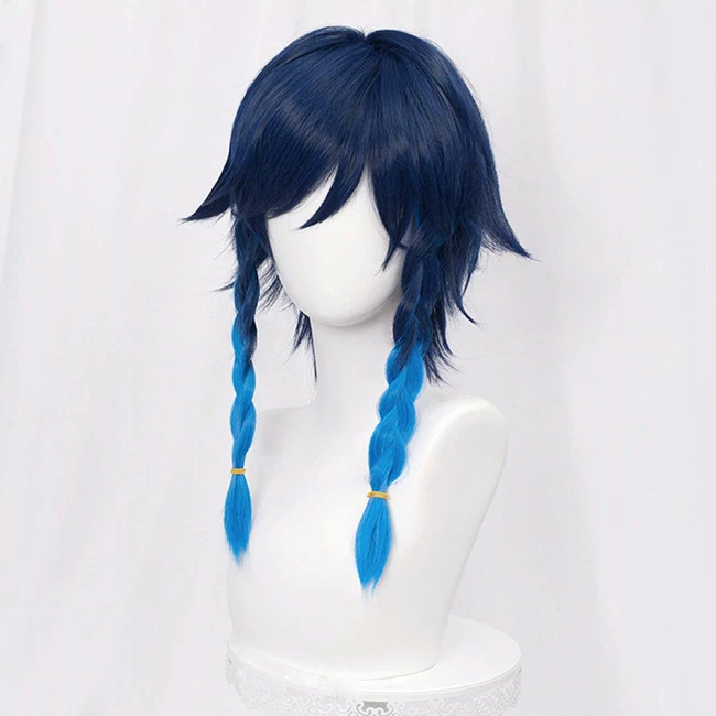 Genshin Impact Venti Cosplay Costume Wig Hair. Genshin Impact is an open world all action role-playing game. In the game, the players control a number of party members, that have different abilities, gear, weapons and personalities. You can switch between characters during fights in order to use a different mix of skills and attacks. The reason Genshin Impact is so popular is because it is a F2P game. Venti is a playable Anemo character of the game. He is a free spirited character and a wine loving poet. Venti is a carefree man with a playful attitude. He likes to rhyme his speeches and is bold. Venti is a God and is allergic to cats. Here we have Venti Cosplay Wig Hair that is dual colored blue with a short behind and pigtails front. Beautifully designed, excellent workmanship, lightweight, fashionable and creative, this is a must have hair wig for all kinds of occasions, events and parties.