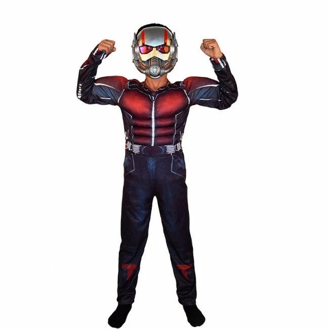 When it comes to power, our Boys Ant-Man Costume is super-sized! This Ant-Man costume includes a polyester red and black jumpsuit with foam muscle chest padding and a hook-and-loop closure at the back. The attached belt has a plastic buckle in the front, and a molded plastic Ant-Man face mask resembling his silver and red helmet completes the superhero look.