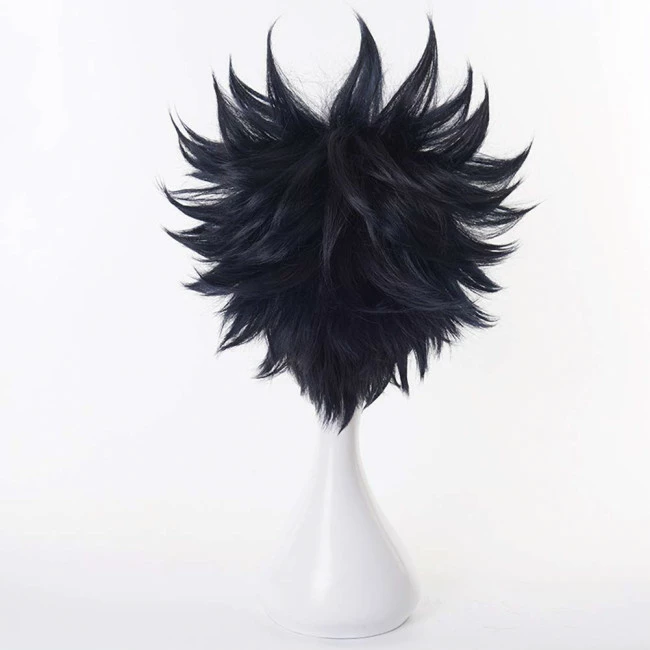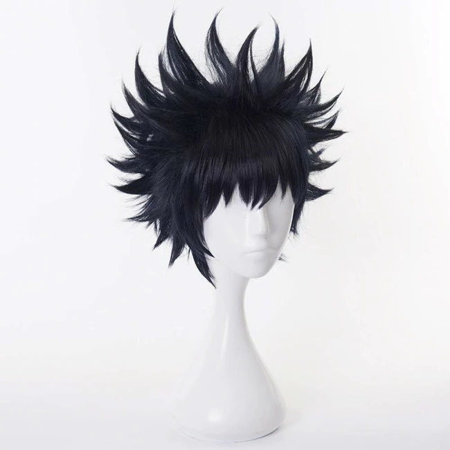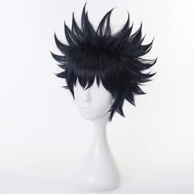 Megumi Fushiguro Jujutsu Kaisen Cosplay Wig. The fibers can be curled or straightened with a hair iron, but it is not recommended to dye the wig, which may cause uneven dyeing effects and hair damage.