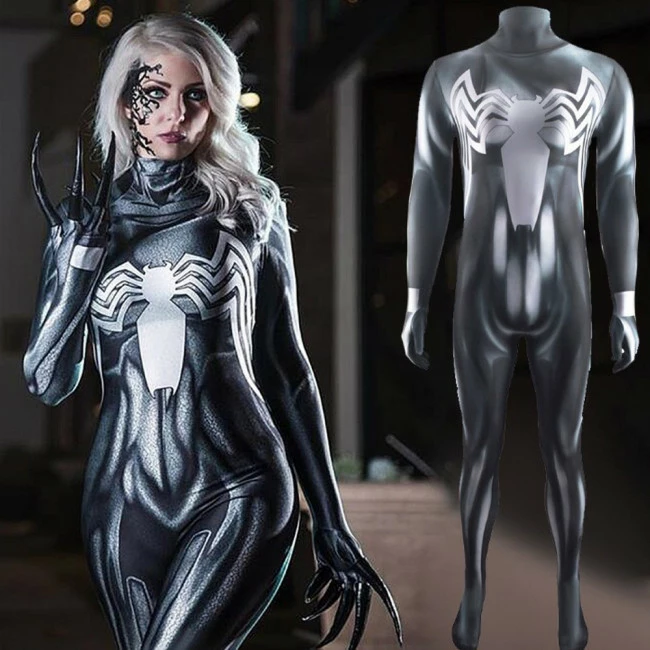 She-Venom Cosplay Costume. It is a body suit goes with a zipper in the back for entry. we make it with the newest 3D printed technology on the patterns, which shown perfectly.