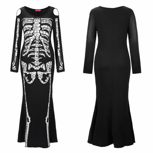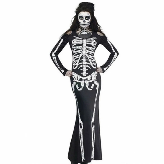 – Skeleton set includes a tube dress with long sleeves and bone imprint