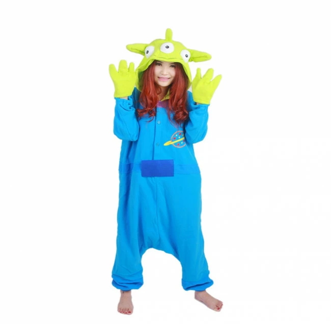 This adorable Toy Story Three Eyed Alien costume looks like it’s straight out of Toy Story. The bright blue jumpsuit has a planet on the chest and is printed with a belt around the belly. It’s topped off with a green headpiece that has three eyes as well as those big ears and the antennae to make it seem like it’s straight out of the movies we know and love. The costume secures with hook and loop strips so it stays soft for comfortable all-night wear.